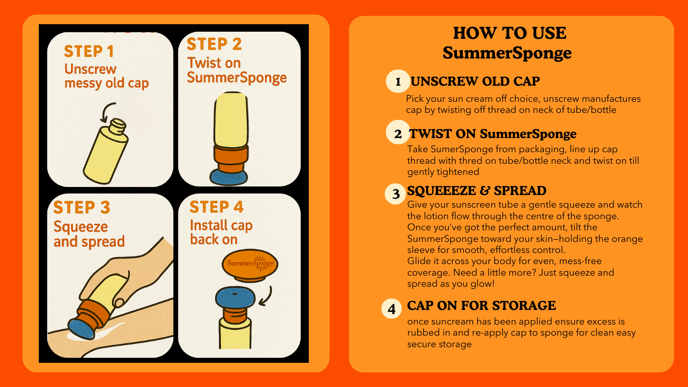 Simply attach SummerSponge to your favourite sunscreen and enjoy a smoother, easier, and more enjoyable way to stay protected in the sun.